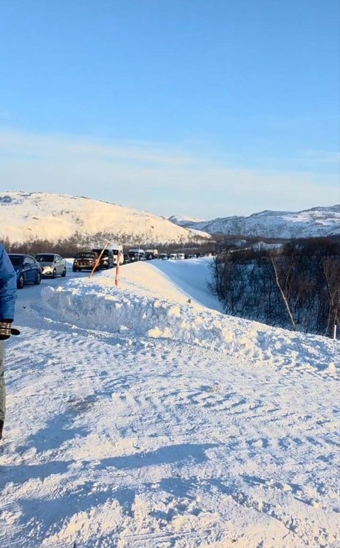 Дорога Мурманск — Териберка закрыта, организованные колонны по трассе не проходят, машины и автобусы возвращают обратно в поселок.